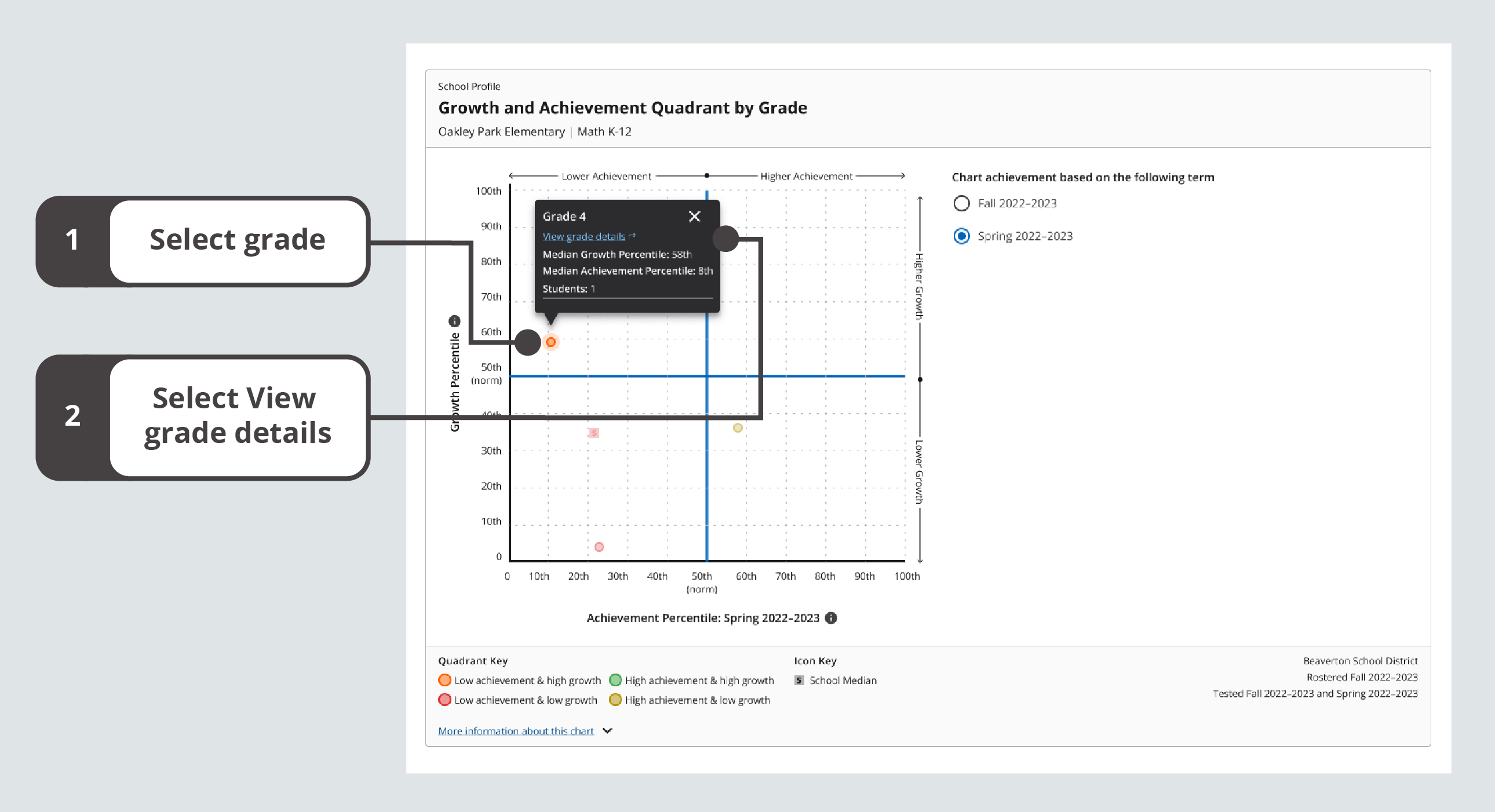 To return to all grades, select any of the data points or medians on the Growth and Achievement Quadrant.