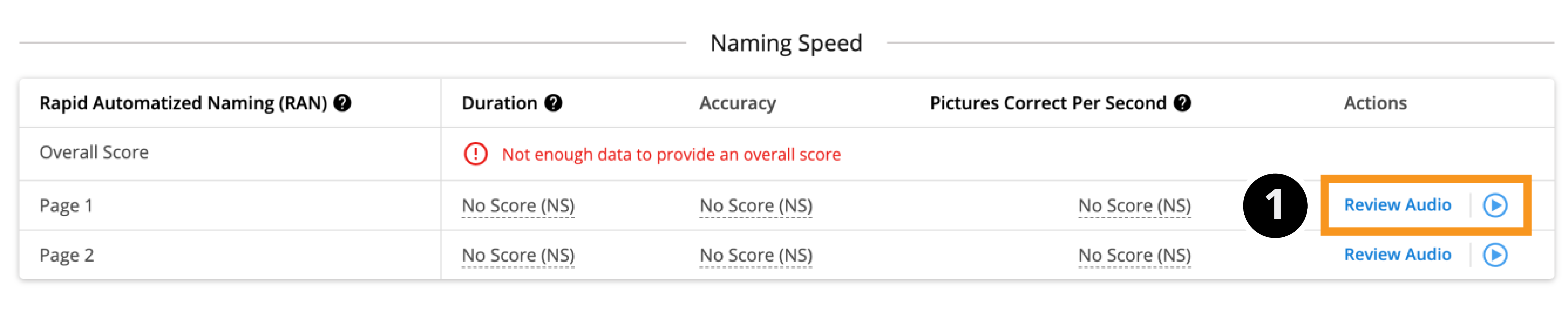 No Score may appear on a student’s report when an insufficient amount of data has been collected to determine a score. This only applies to activities that include oral reading. To learn more, refer to No Score (NS) for Oral Reading.