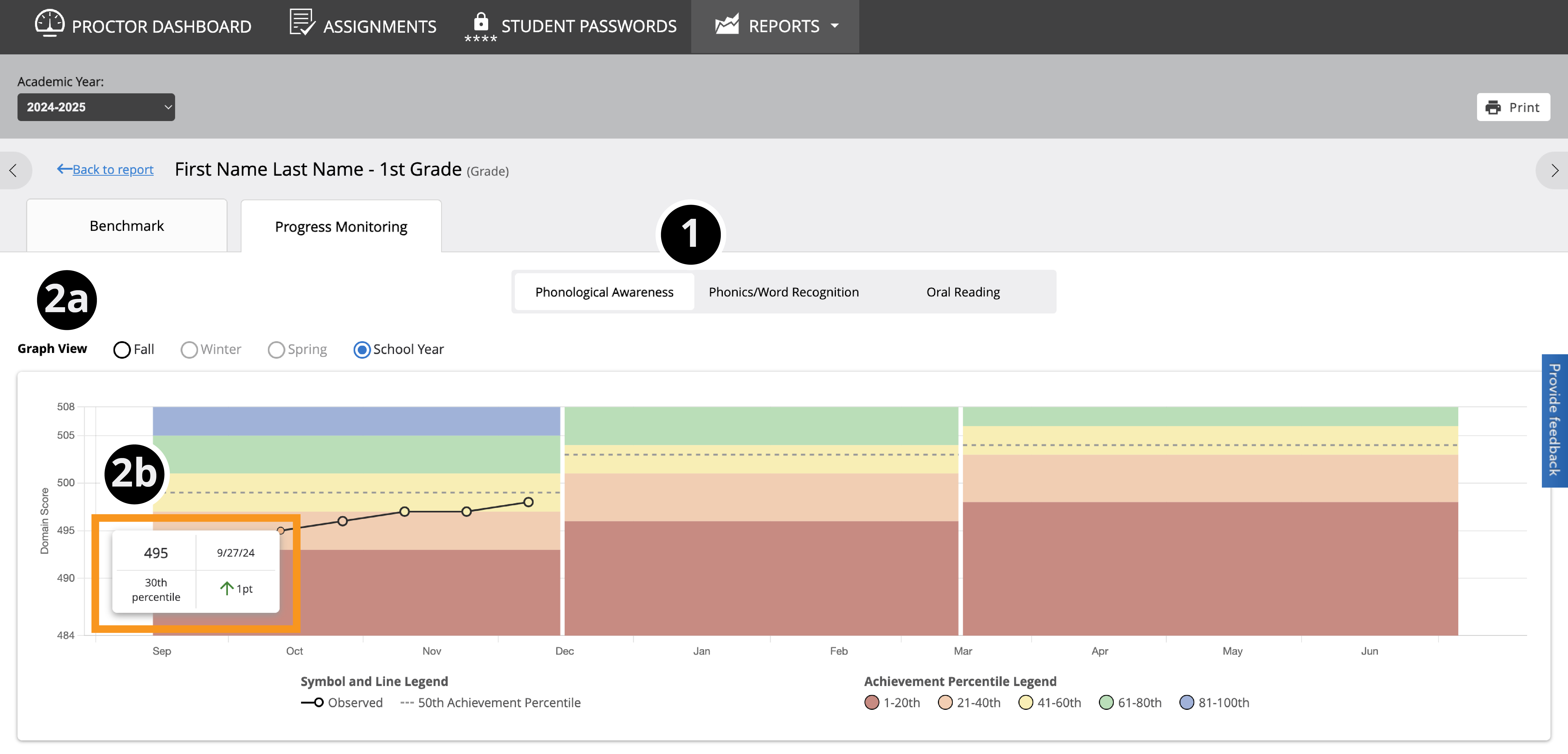 1. You can adjust the graph view for Fall, Winter, Spring, School Year.