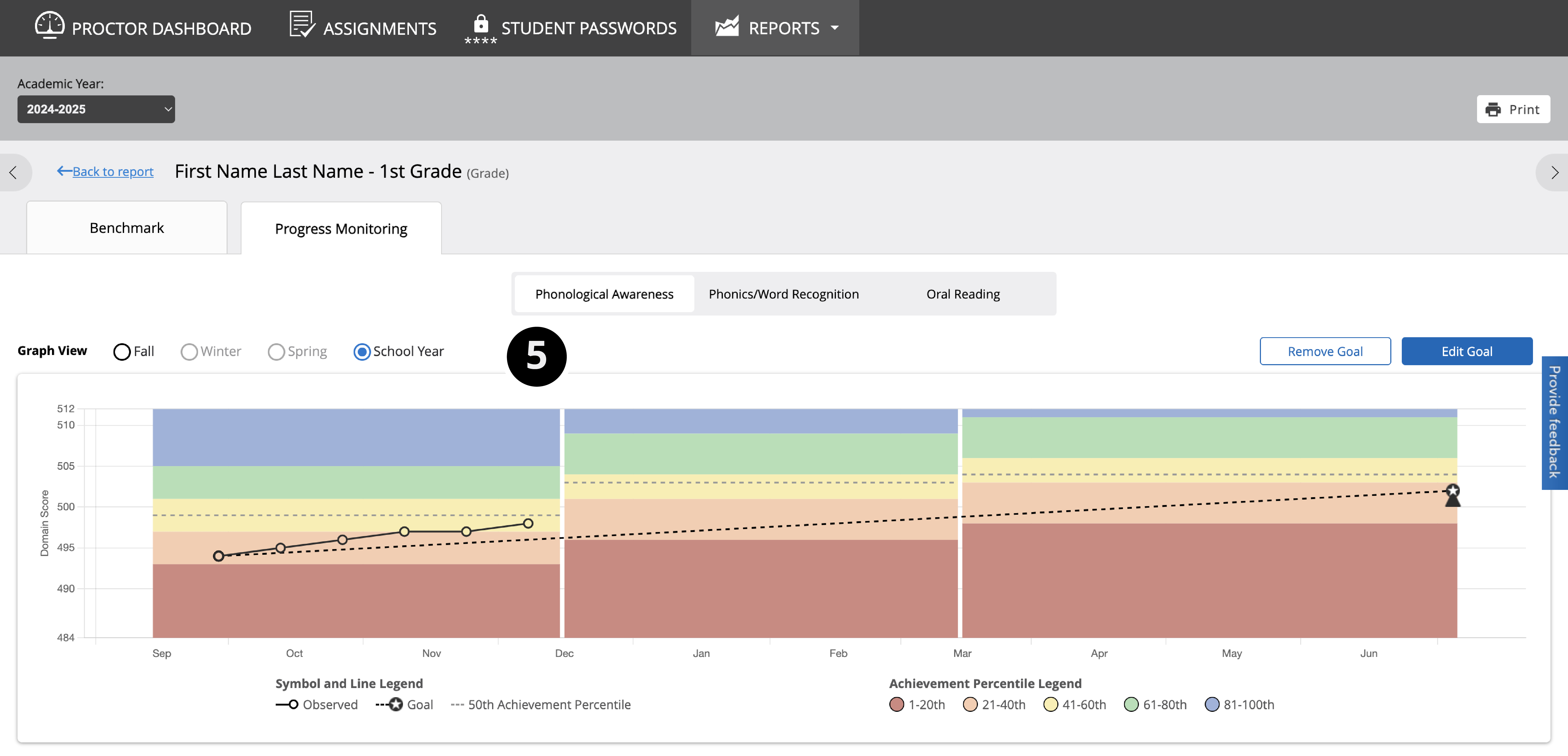 Note: By default, the starting values are set to the Projected Growth, representing a student’s anticipated progress with growth at the 50th percentile. You may adjust any of the fields to set a realistic goal for the student.